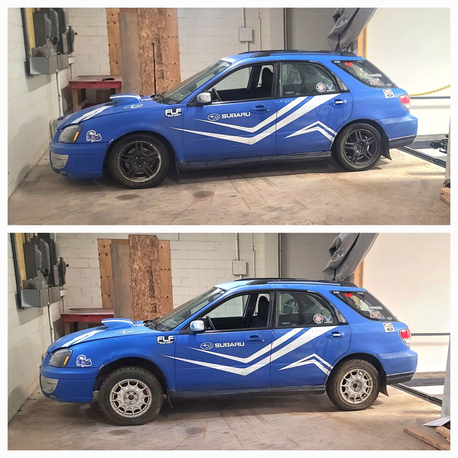 So the rally car got a huge upgrade. We got the Forester suspension swap done. Afterwards, looking at it, it may be an Outback swap. It definitely is higher than we expected.